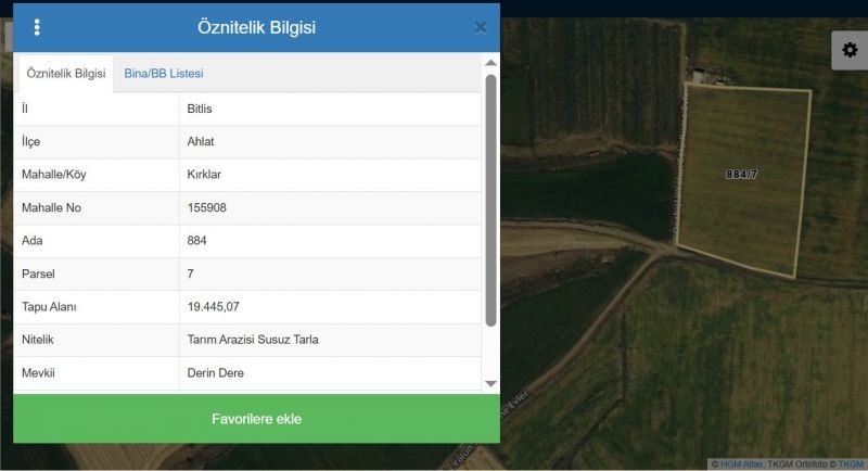 AHLAT İKİ KUBBE MAHALLESİNDE SATILIK 3.524,47 m2 BAHÇE