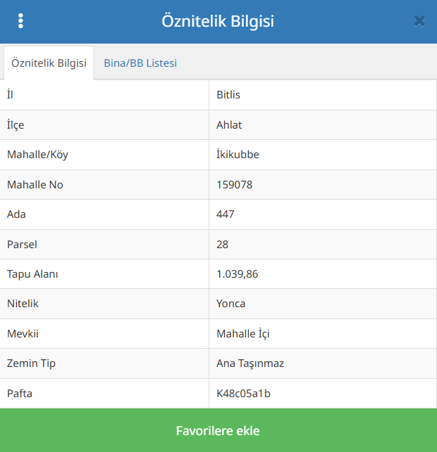 ⚠️ Tarla, bağ-bahçe, hobi bahçesi veya ileriki yıllarda imar durumu değişiklik durumuna bağlı olarak proje alanı olarakda değerlendirilebilir._______________________________________________İLANIN KÜNYESİMEVKİ | AHLAT İKİ KUBBE MAHALLESİ | EMLAK TİPİ | BAHÇE STATÜSÜNDE ARAZİ | M2 BRÜT | | M2 NET | 3.524,47 m2 | M2 FİYATI | | PAFTA NO | | ADA NO | 447 | PARSEL NO | 2 ve 28 NO'lu PARSELLER | KAKS (EMSAL) | | GABARİ | | KREDİYE UYGUNLUK | | TAPU DURUMU | İKİ AYRI TAPU | KİMDEN | EMLAK OFİSİ | TAKAS | HAYIR | | |